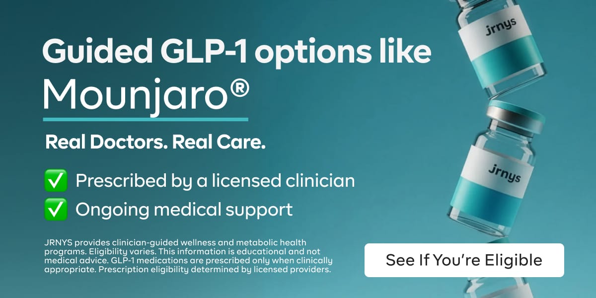 A smarter, clinician-guided approach to weight loss starts with JRNYS. Get ongoing provider support, HSA/FSA-eligible programs, and plans starting at $89/month.* Take a quick online quiz to see if treatment options are right for you. 100% online.
